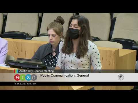 Barton Springs Lifeguard Sofia Pena speaking to Austin City Council in favor of a $22 Living Wage on June 16, 2022. City Council voted unanimously in favor of the resolution for a $22 living wage.